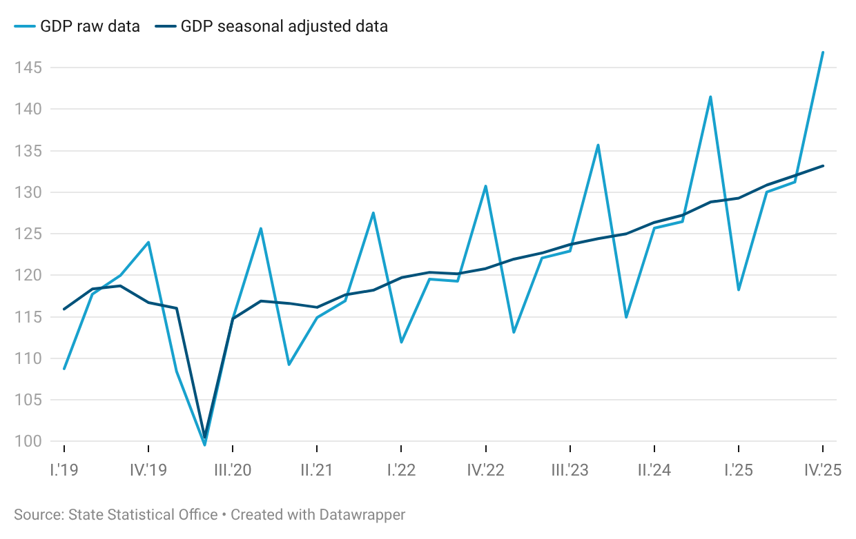 Gross domestic product grew by 3.8 % in the fourth quarter of 2025 compared to the fourth quarter of 2024