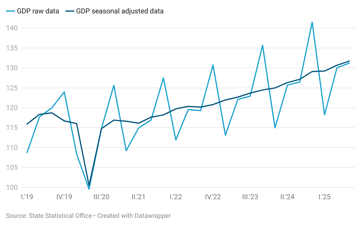 According to seasonally and calendar adjusted data, the growth rate of the Gross Domestic Product in the third quarter of 2025, compared to the third quarter of 2024, was 3.6%.