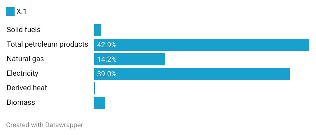 The Gross Inland Consumption in 2024 amounted to 2 541 849 tonnes of oil equivalent (toe). In the structure of this consumption, the largest shares were held by: