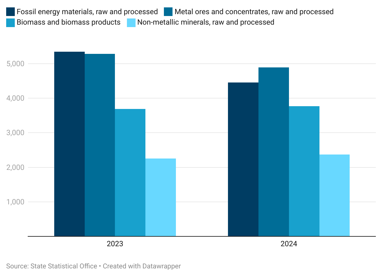 The domestic material consumption was 19 021 thousand tonnes, which is 1 181 thousand tonnes less compared to 2023.