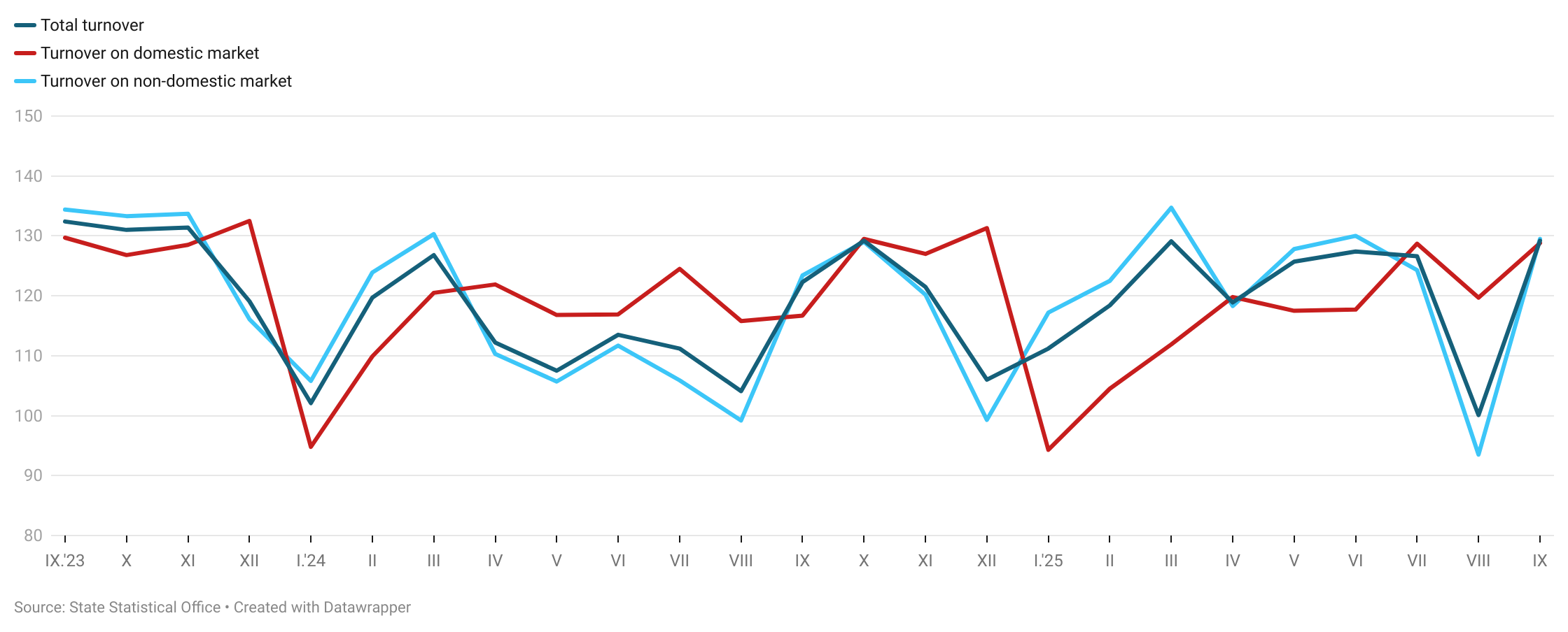 The turnover in industry, total, in September 2025 increased by 5.6% in comparison with September 2024