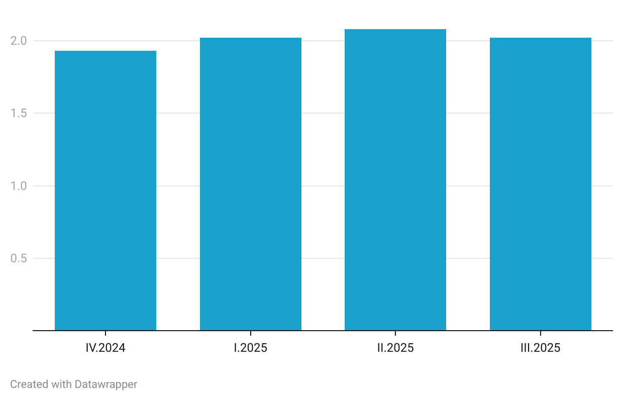 The job vacancy rate in the third quarter of 2025 was 2.02%, and the highest number of job vacancies, 2 052, was recorded in the ninth group of occupations - Elementary occupations.