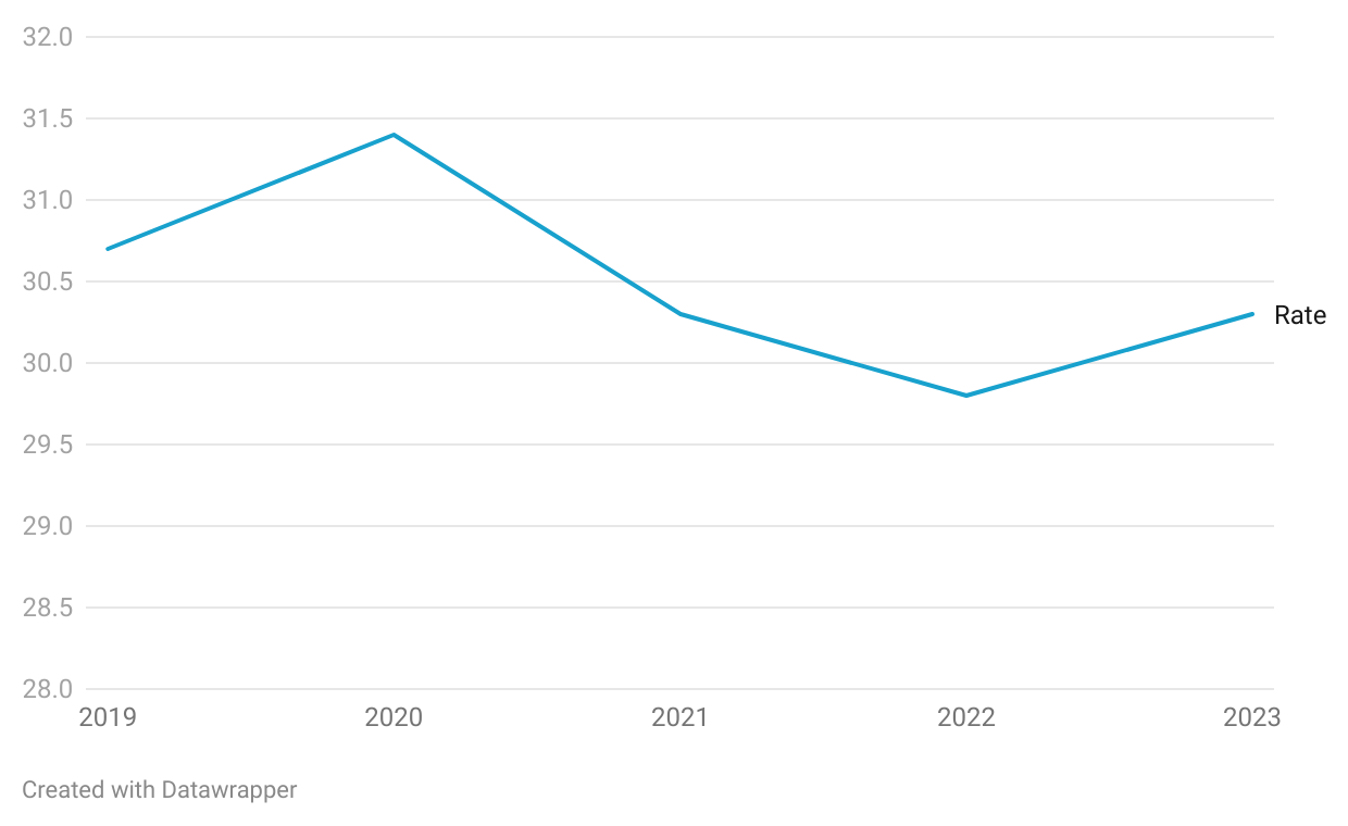 Analyzed by household types, the at-risk-of-poverty rate in households of two adults with two dependent children in 2023 was 17.8%. According to the most frequent activity status, the at-risk-of-poverty rate for employed persons was 8.4%, while for the pensioners it was 11.3%. The Gini coefficient (measure of income distribution inequality) was 30.3%.