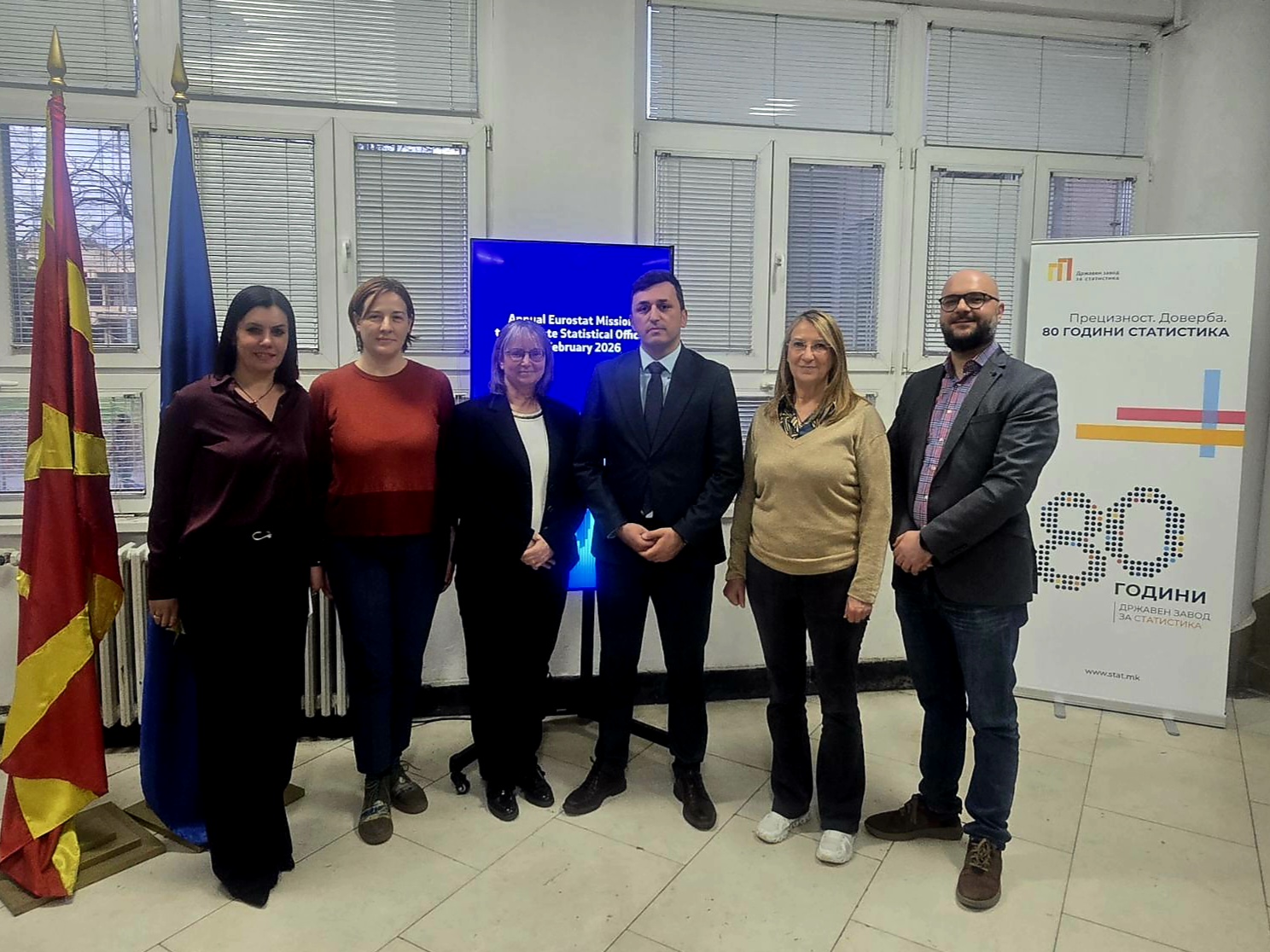 Во периодот од 9 до 11 февруари 2026 година, Државниот завод за статистика беше домаќин на редовната годишна мисија на Евростат. Делегацијата ја предводеше Клаудија Јункер, раководител на Одделот за соработка, соседство и развојна соработка, заедно со Вероник ван дер Занде, одговорен службеник за нашата држава.