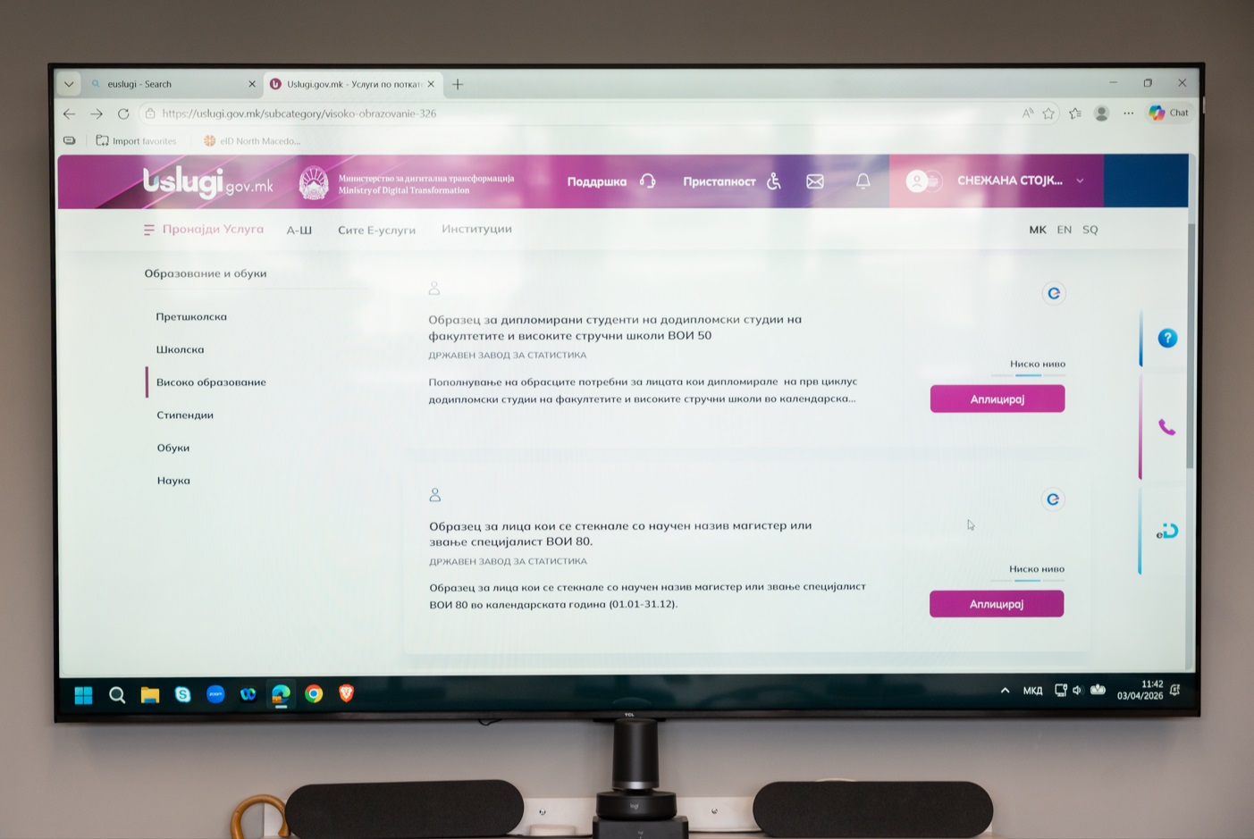 Денес, Државниот завод за статистика во соработка со Министерството за дигитална трансформација ги промовира трите нови електронски услуги што се достапни на Националниот портал за е-Услуги – uslugi.gov.mk, во областа Високо образование.