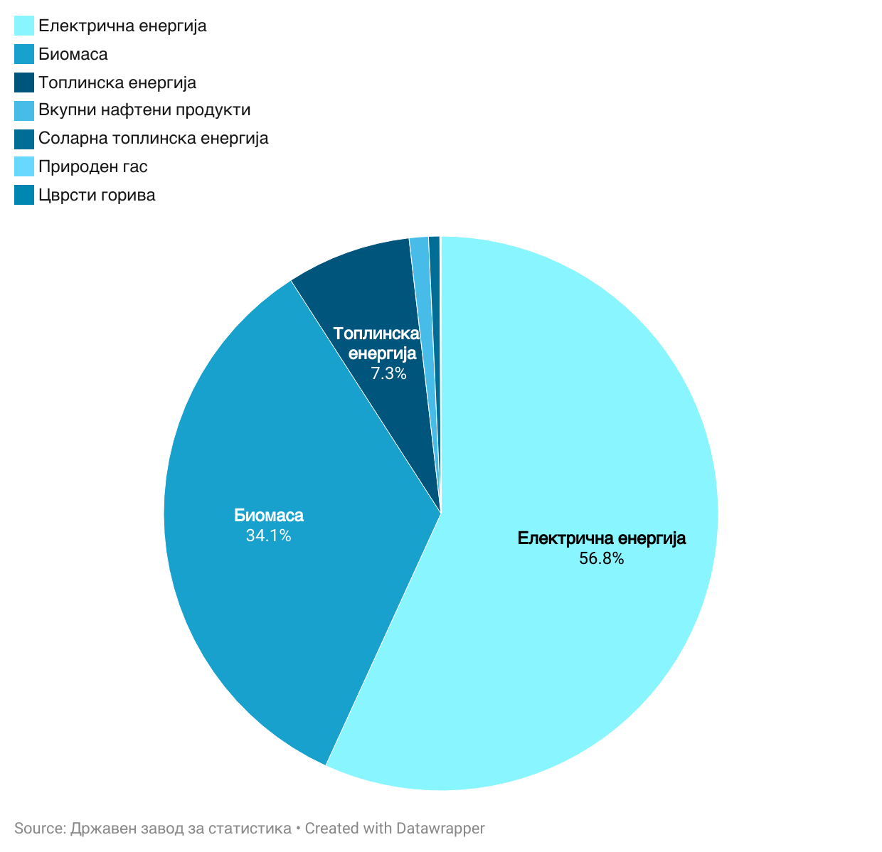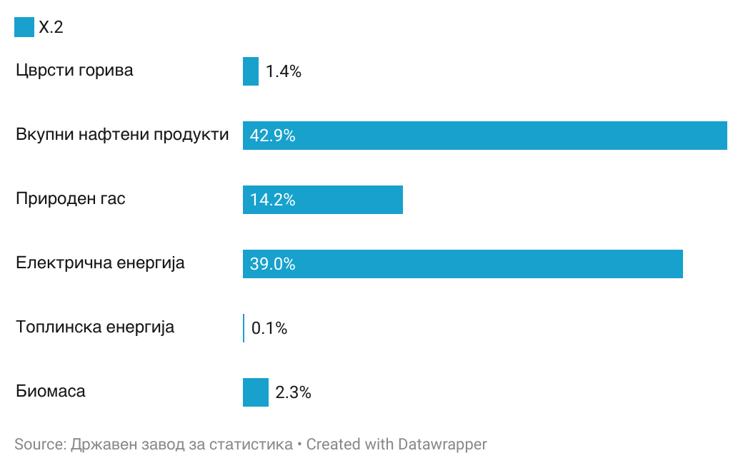 Во 2024 година, 65.5 % од вкупната потребна енергија е обезбедена од увоз