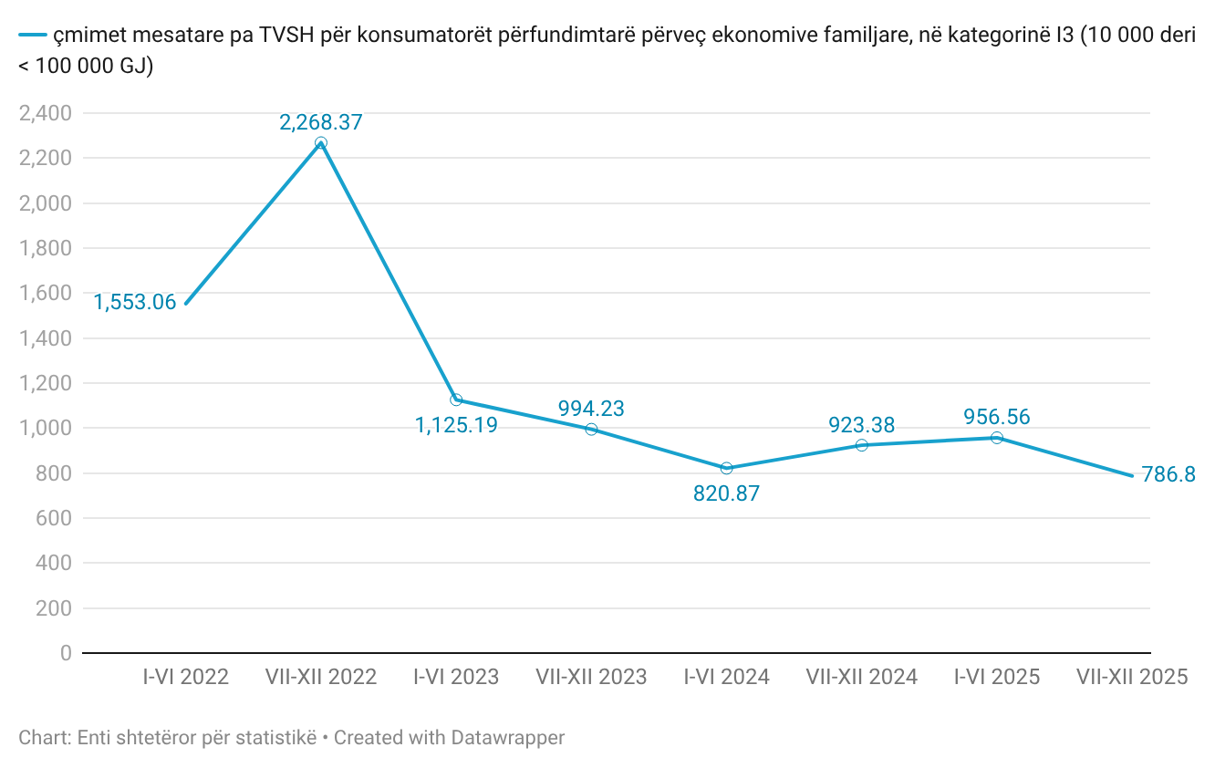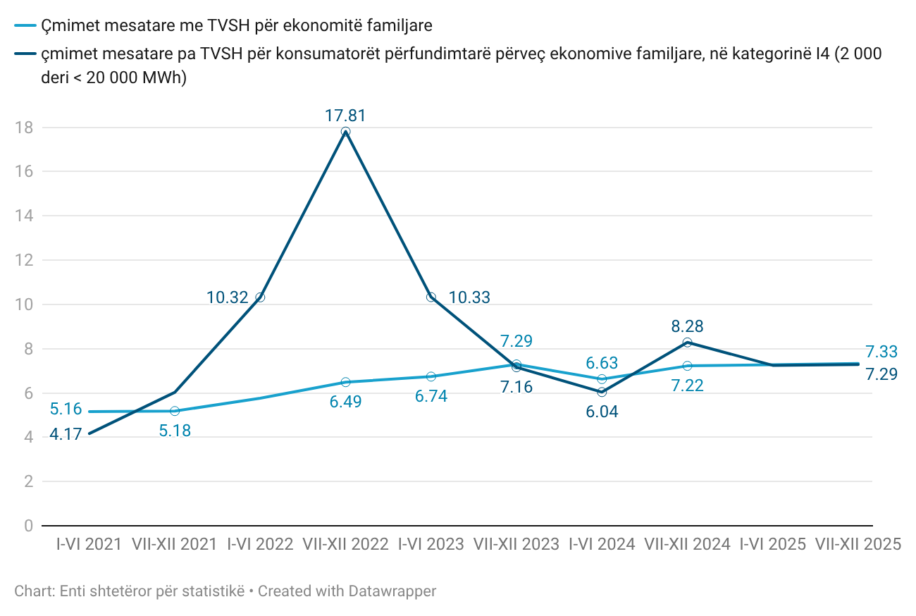 Në gjysmëvjetorin e dytë të vitit 2025, vërehet rritje e lehtë e çmimit të energjisë elektrike për amvisëritë, ndërsa për konsumatorët e tjerë çmimi i energjisë elektrike dhe çmimet e gazit natyror në përgjithësi janë në rënie.