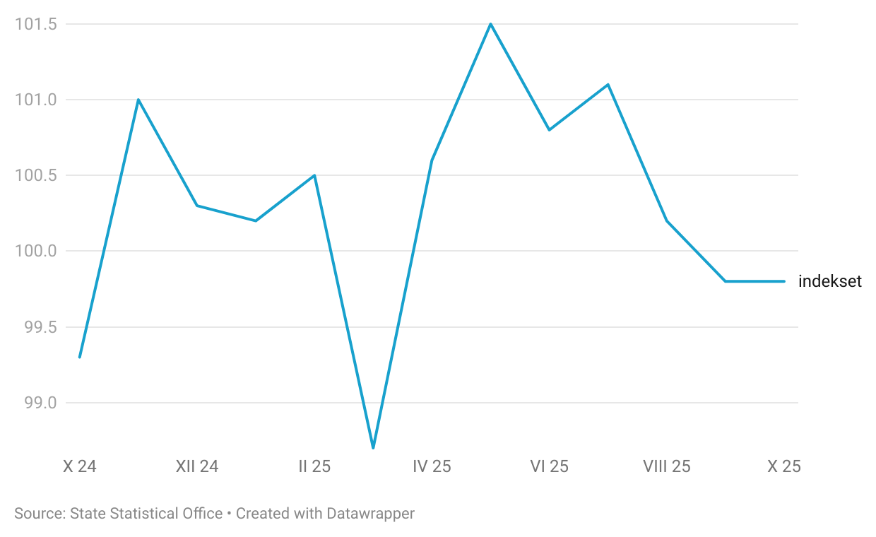 Inflacioni i matur nëpërmjet indeksit të kostos për jetesë në muajin tetor të vitit 2025, krahasuar me muajin shtator të vitit 2025, është -0.2%.
