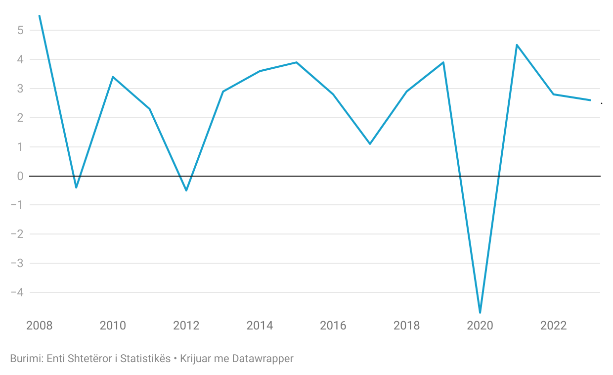 Norma reale e rritjes së Prodhimit të Brendshëm Bruto në vitin 2023, krahasuar me vitin 2022, është, 2.6%.