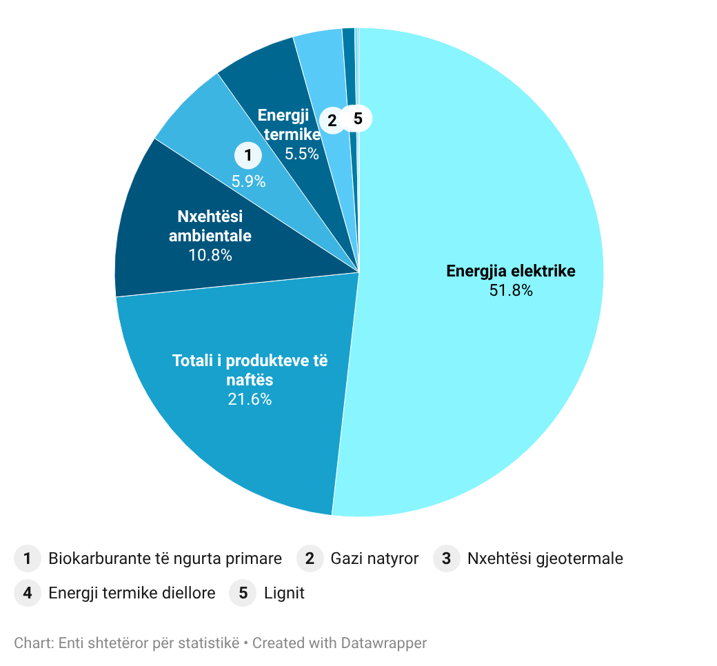 - Nga burimet e ripërtëritshme të energjisë, pjesëmarrjen më të madhe e ka nxehtësia ambientale me 10.8% të konsumit total final të energjisë
