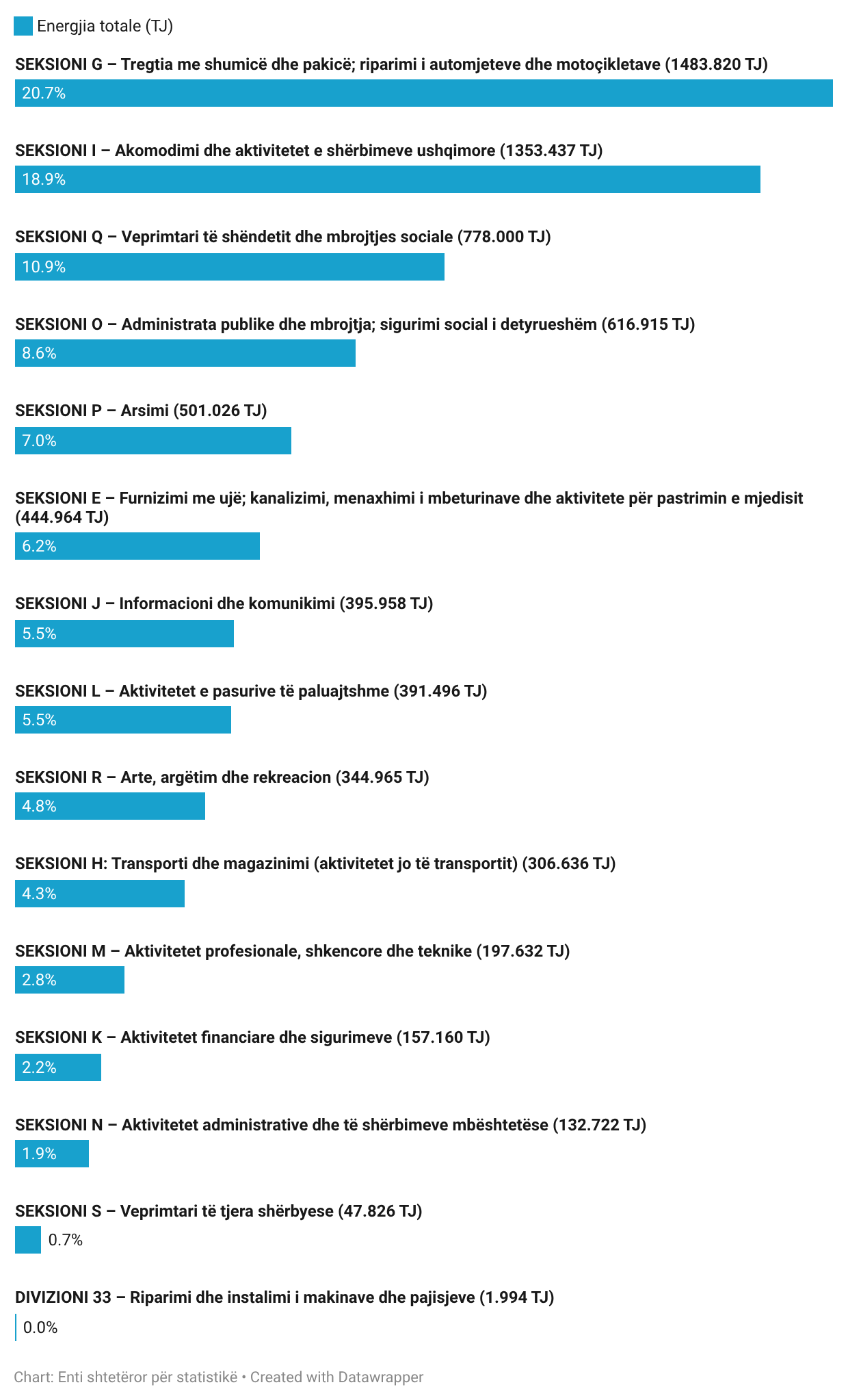 - Akomodimi dhe aktivitetet e shërbimeve ushqimore – 1 353.437 TJ
