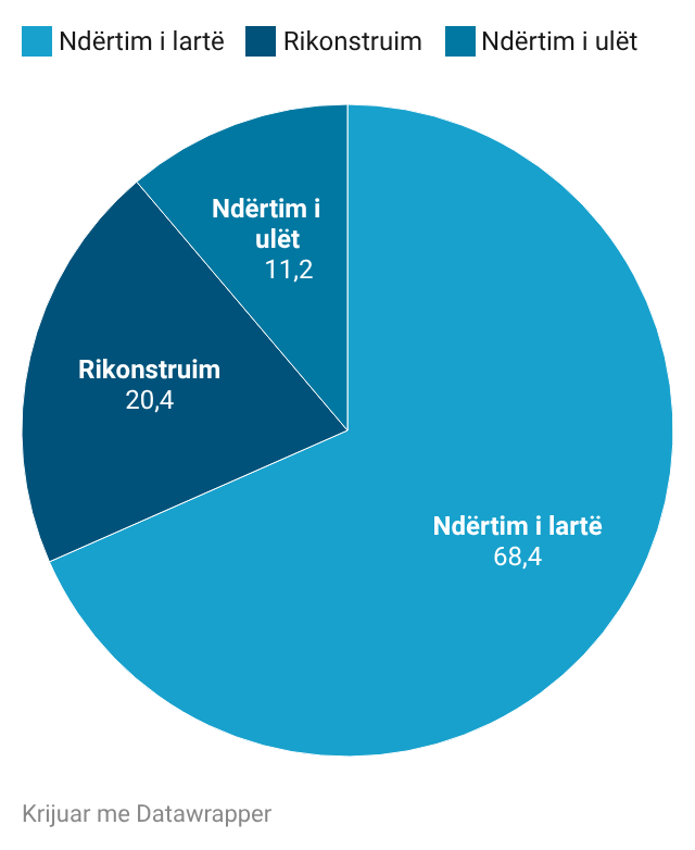 Nga numri i përgjithshëm i lejeve të dhëna për ndërtim 208 (68.4%) janë të dedikuara për objektet e ndërtimit të lartë, 34 (11.2%) për objektet e ndërtimit të ulët dhe 62 (20.4%) për objektet për rikonstruim.