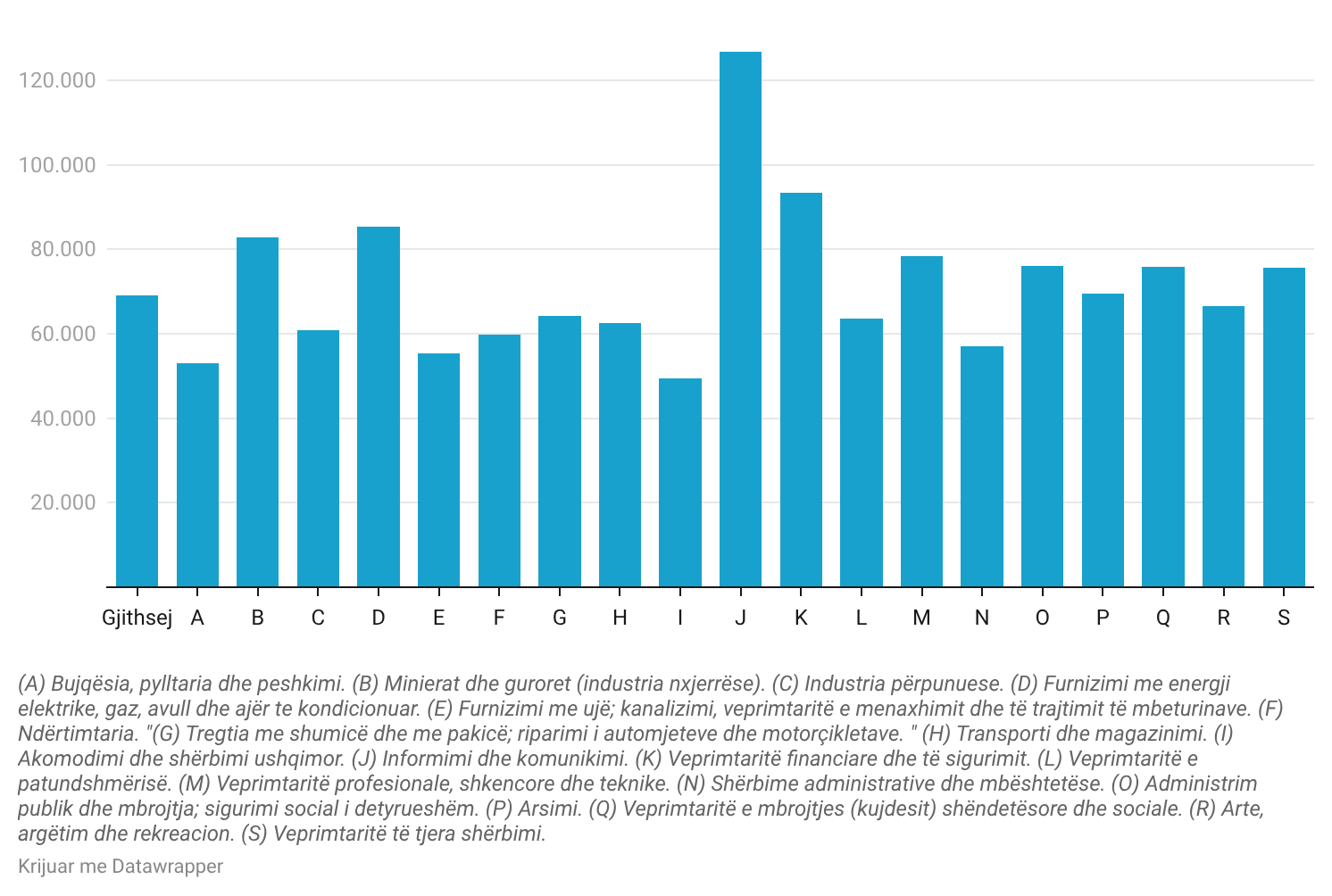 Ritja e pagës mesatare mujore bruto për të punësuar, krahasuar me muajin paraprak, është vënë re në sektorët: Administrim publik dhe mbrojtja; sigurimi social i detyrueshëm për 3.6%, Shërbime administrative dhe mbështetëse për 2.2% dhe Tregtia me shumicë dhe me pakicë;riparimi i automjeteve dhe motorçikletave për 1.1%.