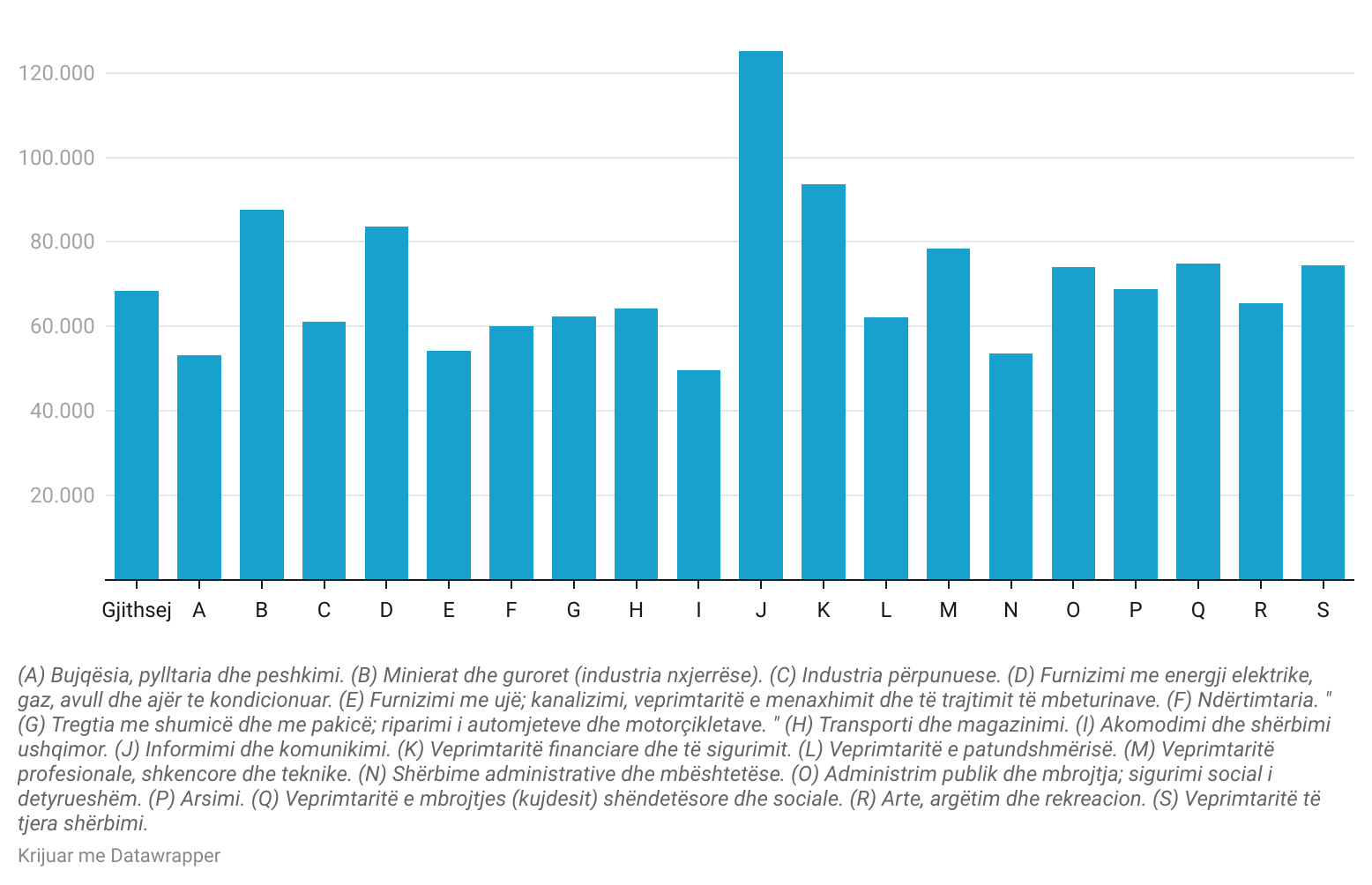Ritja e pagës mesatare mujore bruto për të punësuar, krahasuar me muajin paraprak, është vënë re në sektorët: Industria përpunuese për 3.6%, Administrim publik dhe mbrojtja; sigurimi social i detyrueshëm për 1.9% dhe Minierat dhe guroret (industria nxjerrëse) për 1.0%.