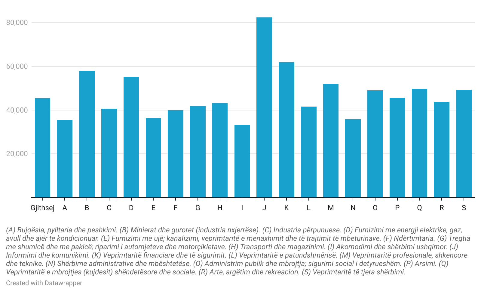 Ritja e pagës mesatare mujore neto për të punësuar, krahasuar me muajin paraprak, është vënë re në sektorët: Industria përpunuese për 3.5%, Administrim publik dhe mbrojtja; sigurimi social i detyrueshëm për 1.8% dhe Minierat dhe guroret (industria nxjerrëse) për 1.1%.