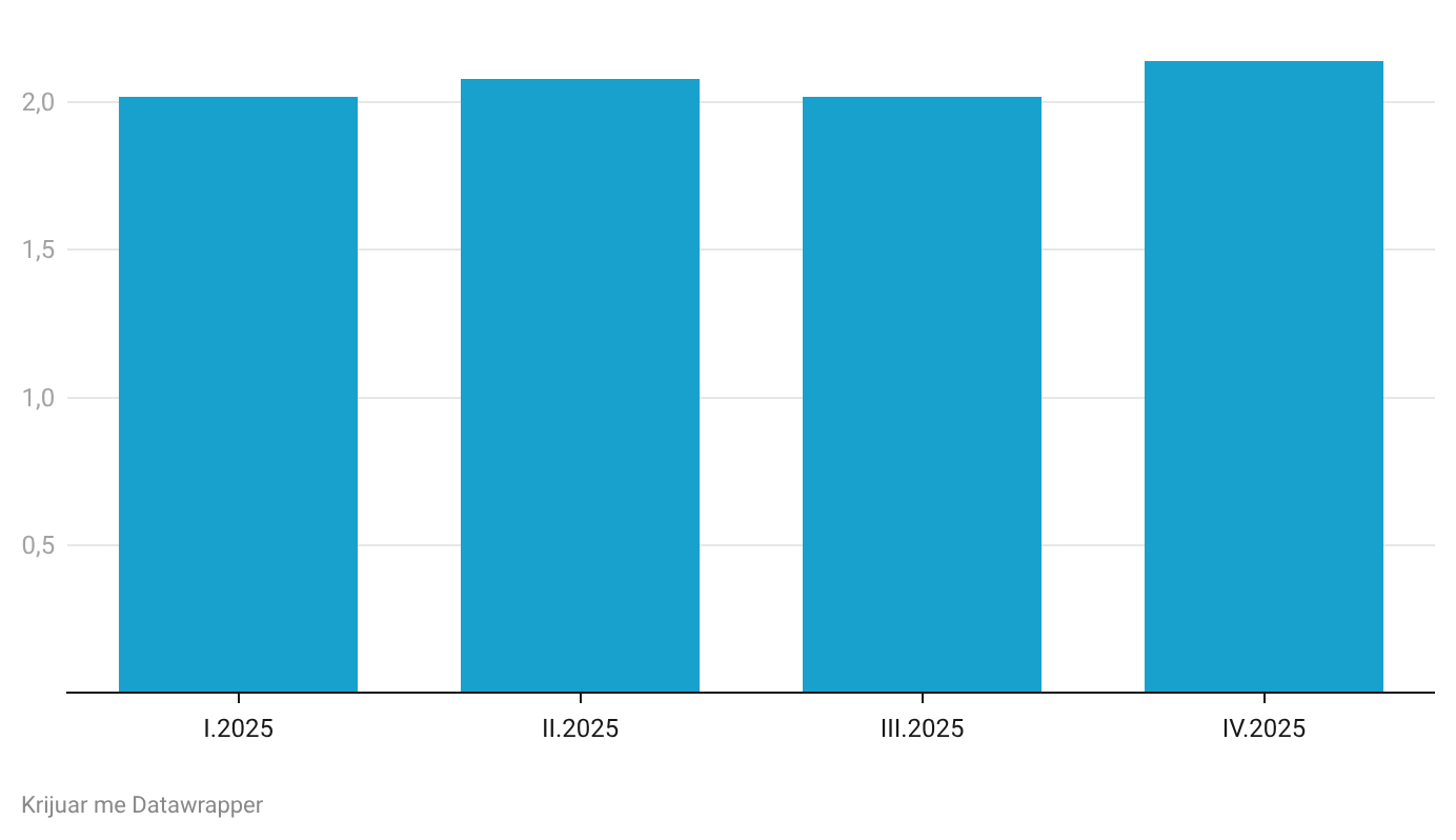 Shkalla e vendeve të lira të punës në tremujorin e katërt të vitit 2025 është 2.14%, ndërsa numri më i madh i vendeve të lira të punës, 2 387, është në grupin e pestë të profesioneve: Punëtorë në veprimtari shërbyese dhe shitje.
